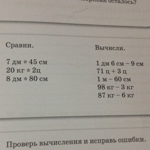 7дм больше чем 45см 20кг больше чем 2ц 8дм и 80см одинаковы