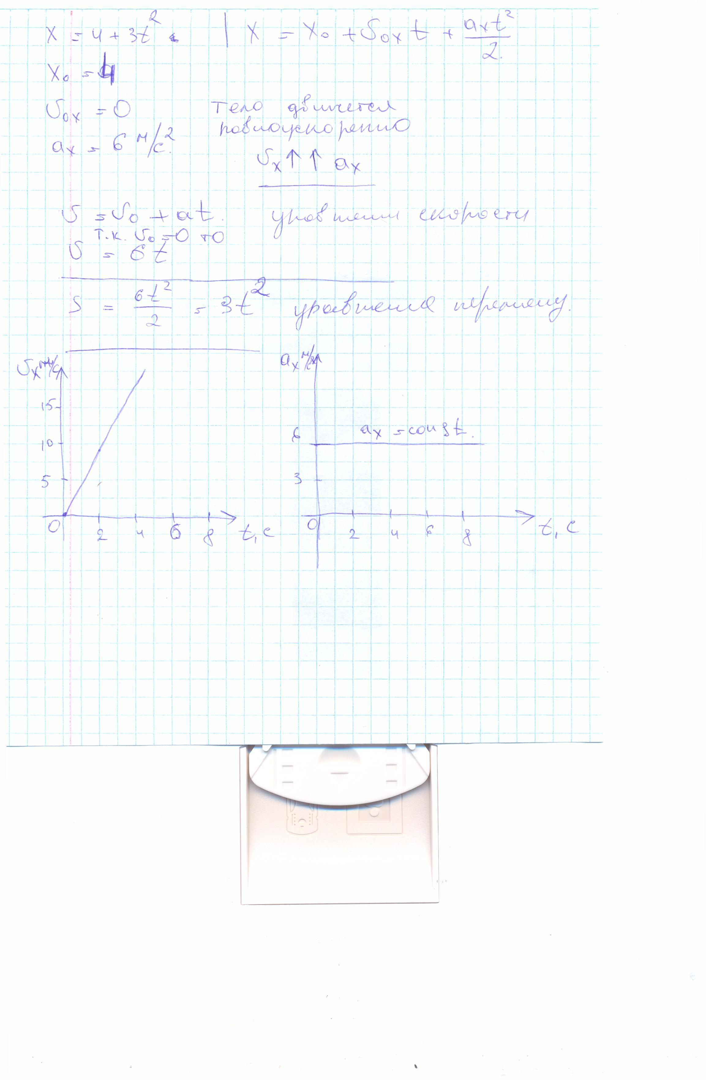Движение материальной точки описывается уравнением: x=4+3t^2.