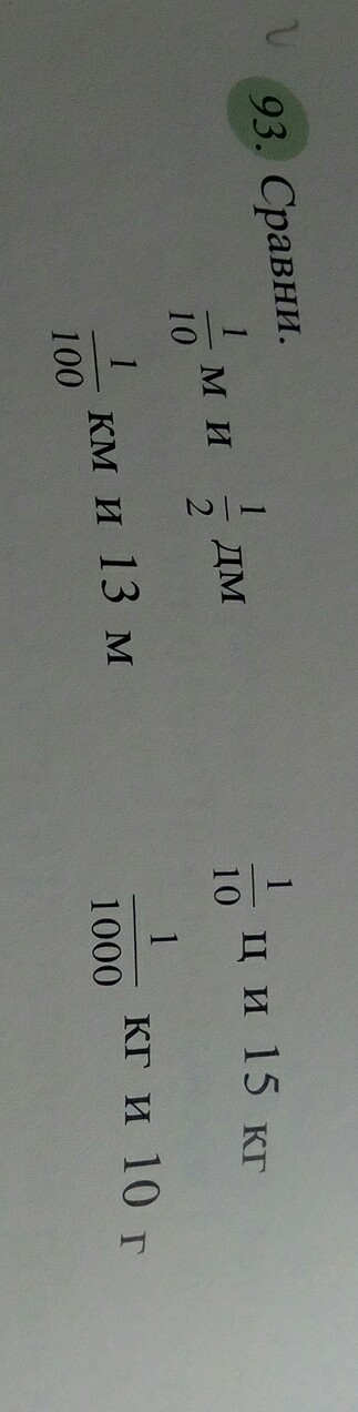 1/10м (10 см) > 1/2 дм (5 см) 1/100 км (10 м) < 13м 1/10 ц (10 кг) =10 кг