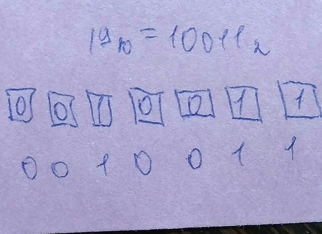надо подставлять число с конца, если остались клетки- заполнять 0 (Если число положительное!!!!). заполнять 1 если отрицательное