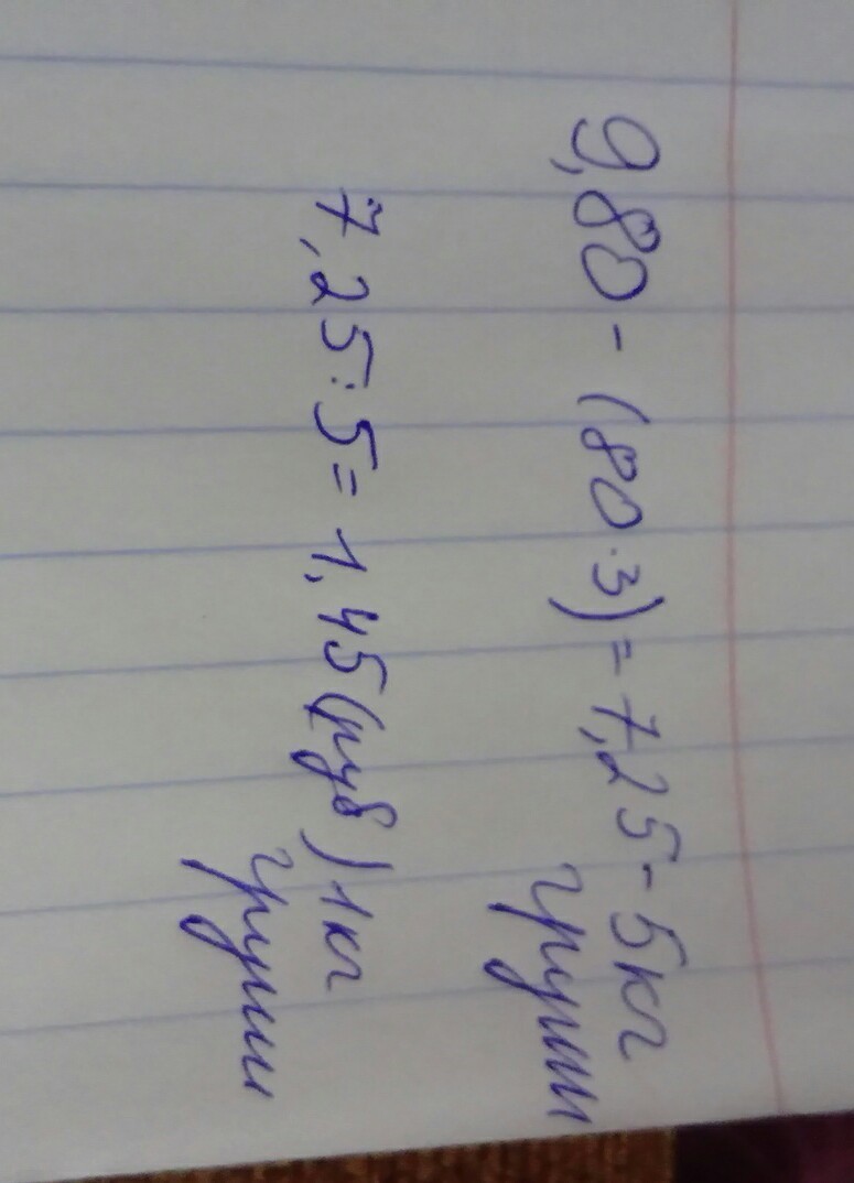 отец купил за 9 ман 80 кяпик 3 кг яблок и 5 кг груш. Сколько стоит 1 кг груш, если 1 кг яблок стоит 85 гяпик?