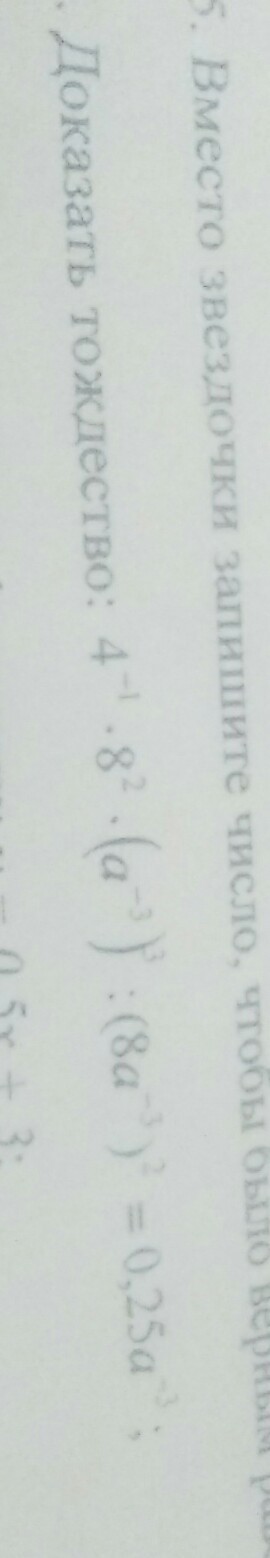 4⁻¹*8²(а⁻³)³:(8а⁻³)²=2⁻²*(2³)²*а⁻⁹:(2³)²*а⁻⁶=2⁽⁻²⁺⁶⁻⁶⁾*а⁽⁻⁹⁺⁶⁾=2⁻²а⁻³=а⁻³/4=0,25а⁻³