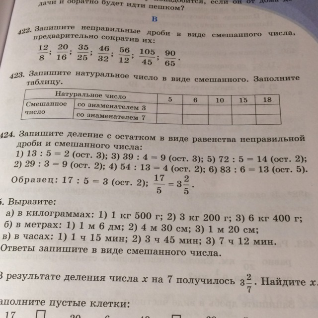 13/5=2 3/5 два целая часть, 3 остаток, 5 делитель и т.д.