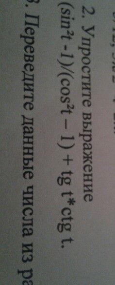 (sin^2t-1)/(cos^2t-1)+tgt*ctgt= cos^2t/sin^2t+1=tg^2t+1==1/cos^2t