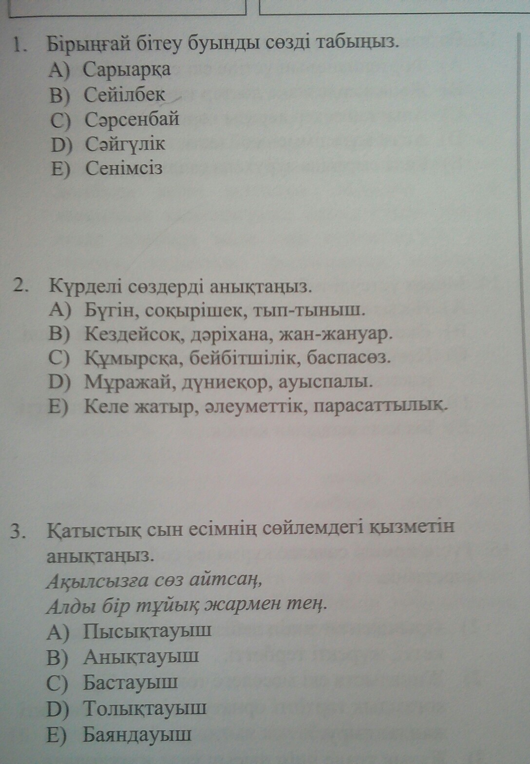 2)Бүгін, соқырішек, тып-тыныш
