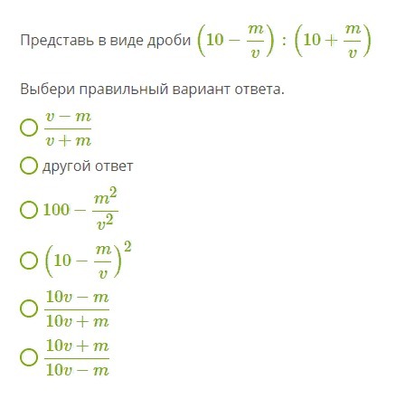 =(10v-m)/v . v/(10v+m)=(10v-m)/(10v+m)