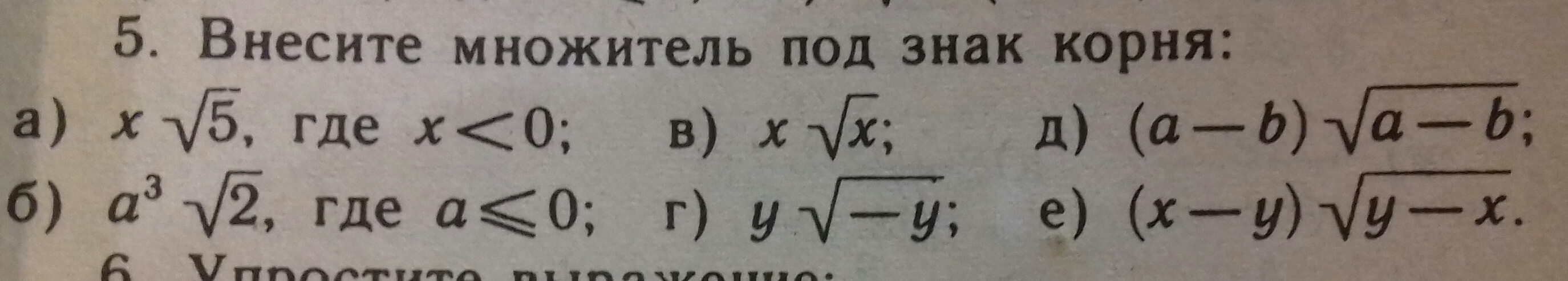 внесите множитель под знак корня (а-г)