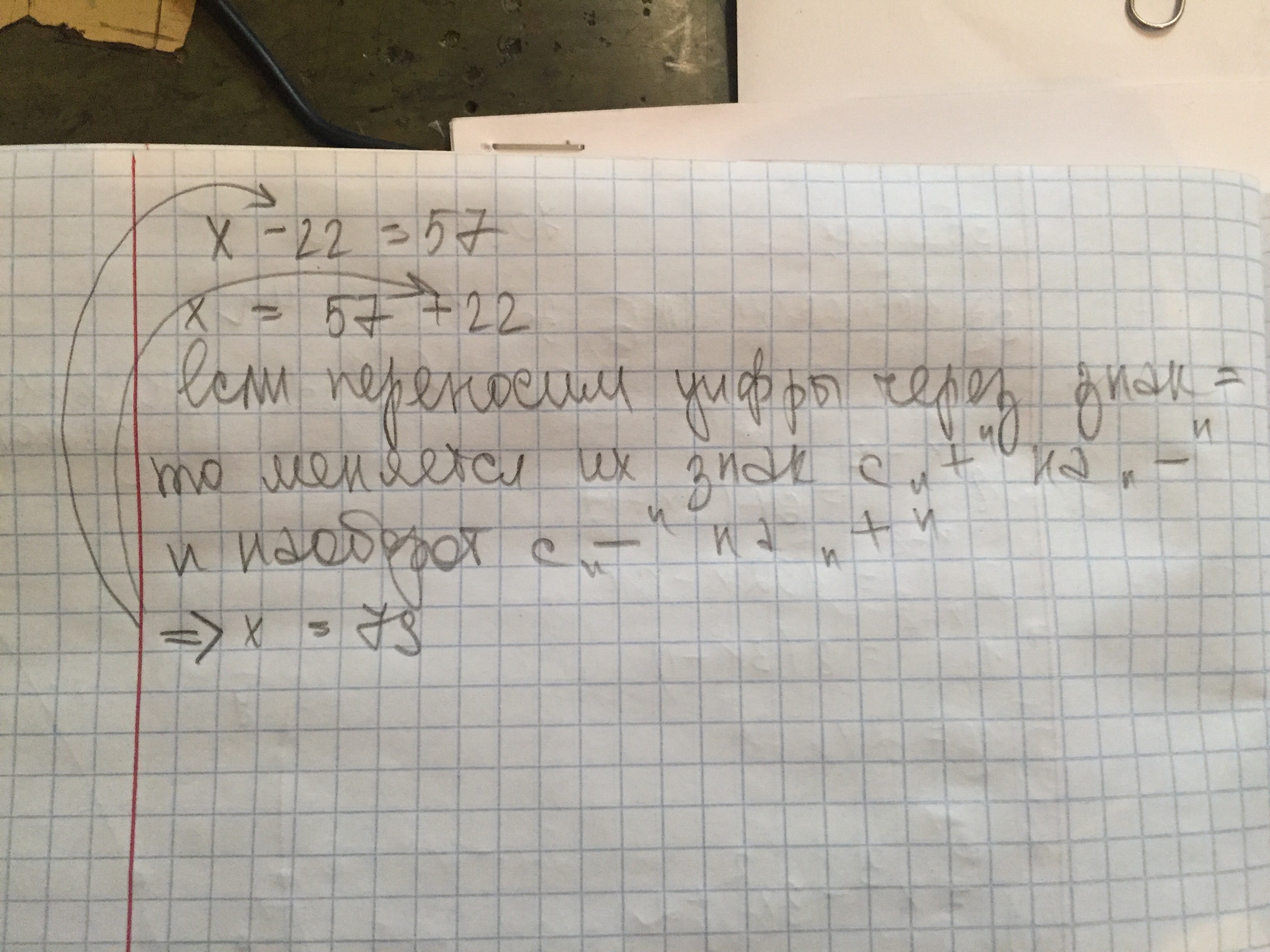 х=57+22=79 вот собственно и все цифры переноси в одну сторону а х в другую с противоположными знаками