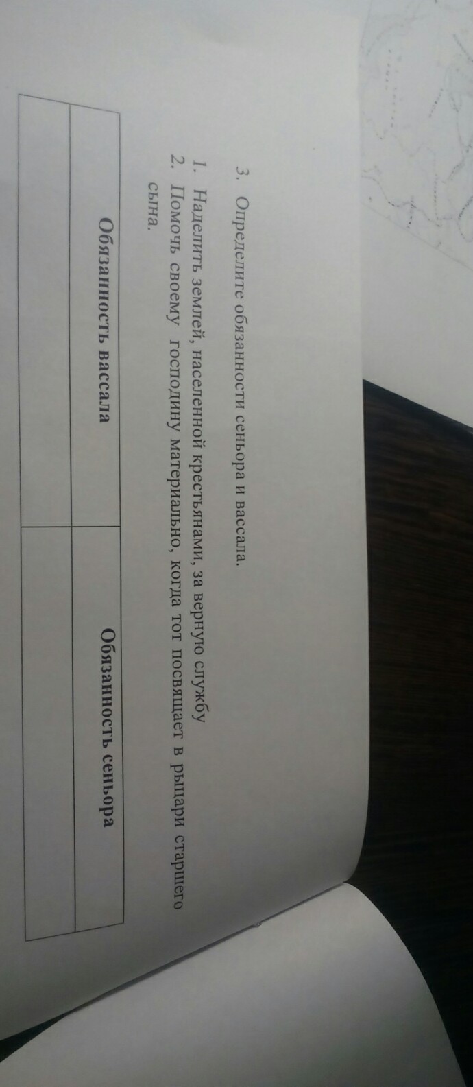 Определите обязанности сеньора и вассала