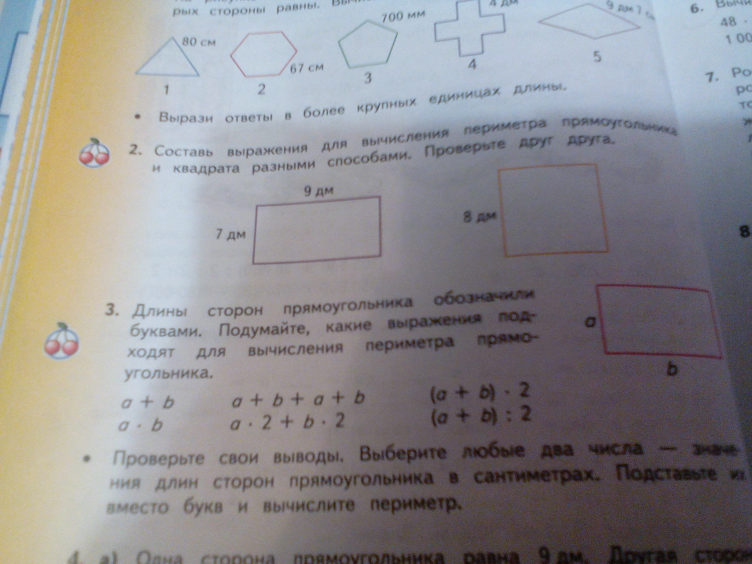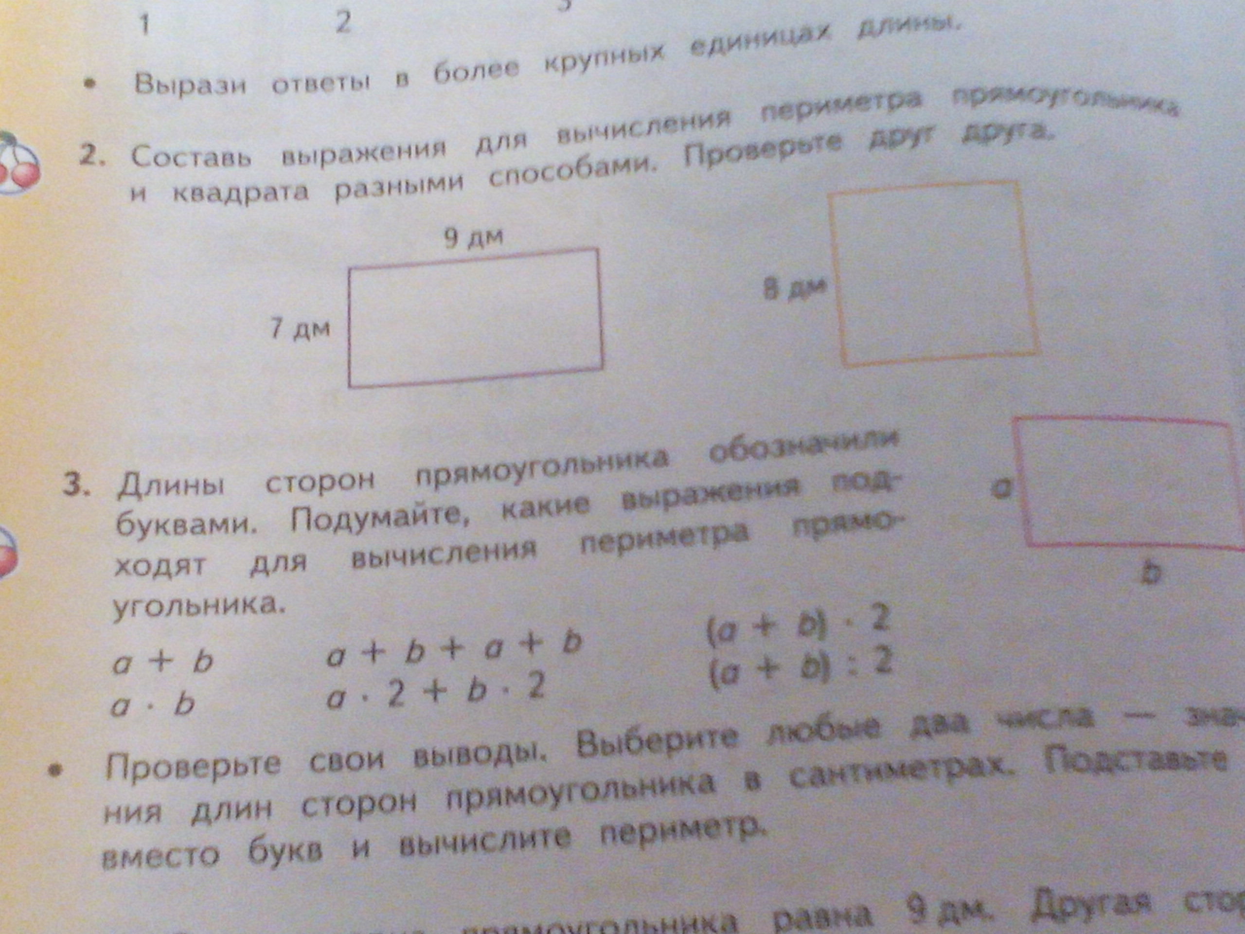 Длины сторон прямоугольника обозначили буквами. Подумайте какие выражения подходят для вычисления периметра прямоугольника.