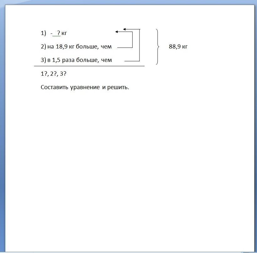 Найти сколько в 1,2,3. Общая масса всех трех составляет 88,9 кг