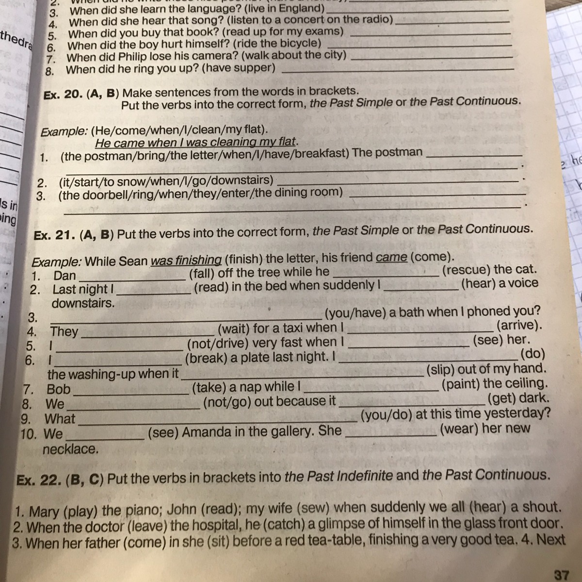 Ex. 21. (A, в) Puttheverbs into the correct form, the Past simple or the Past Continuous.