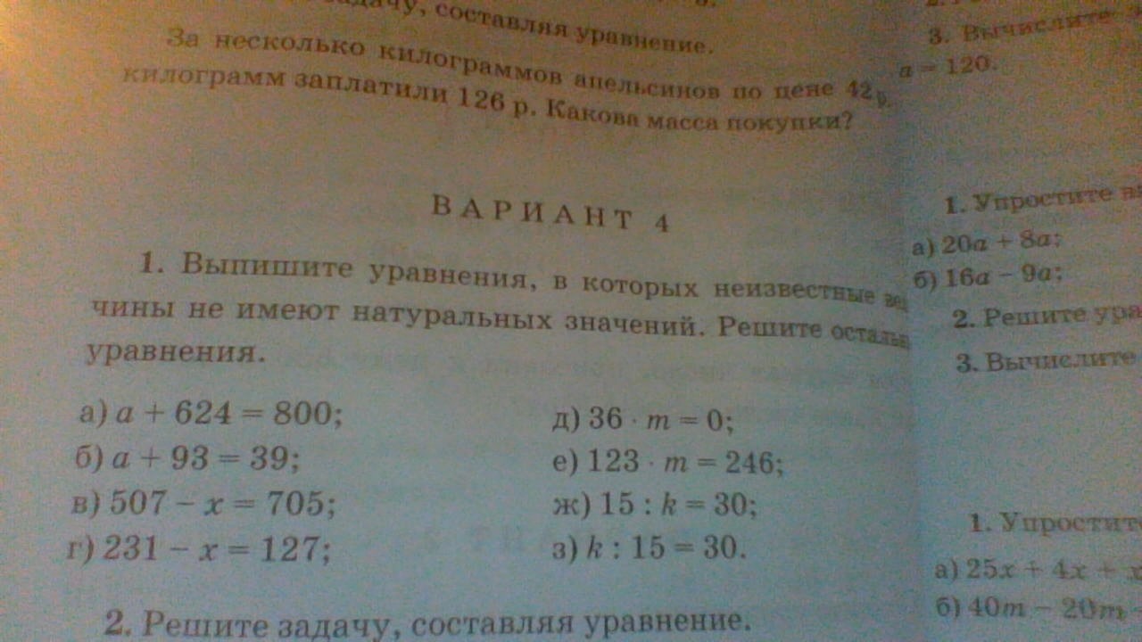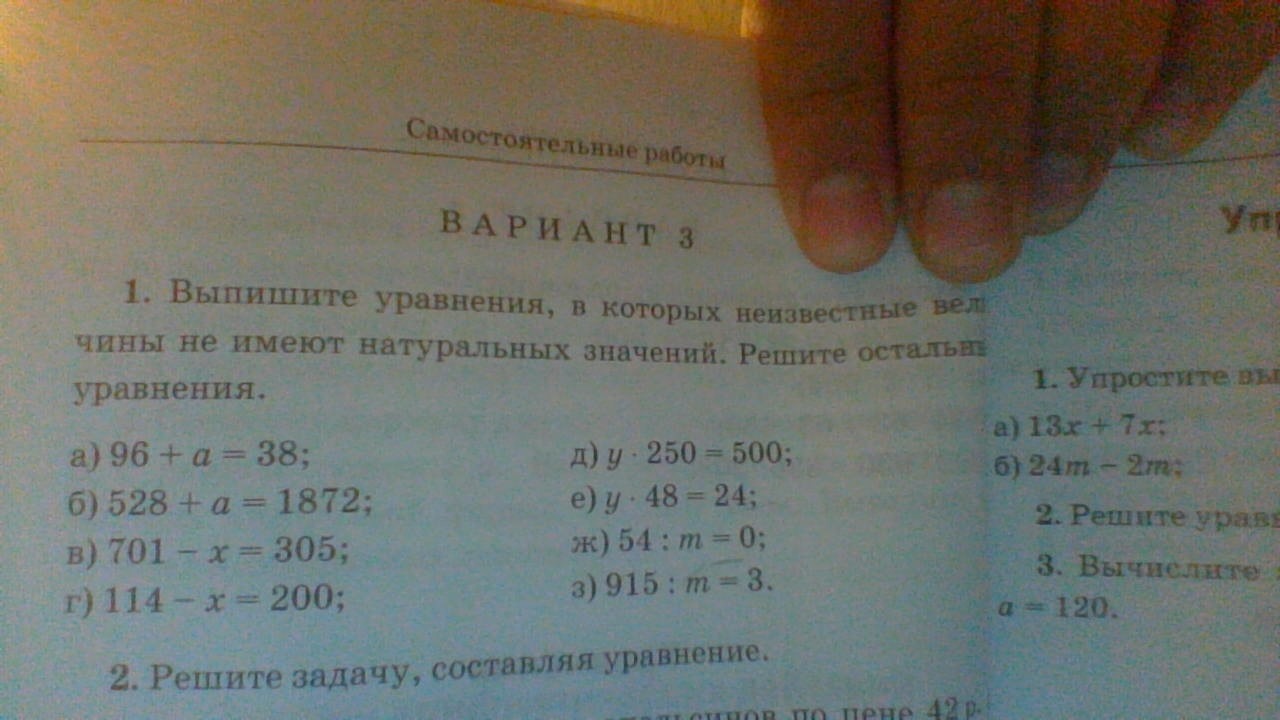 выпишите уравнение в которых неизвестные велиичины не имеют натуралных значений решите остальные уравнение вариант 3и 4 ЗАРАНИЕ СПАСИБО ДАм 40 БаЛлОв