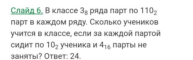 В классе 3(8) ряда парт по 110(2) парт в каждом ряду. Сколько учеников учится в классе, если за каждой партой сидит по 10(2) ученика и 4(16 )парты не заняты?