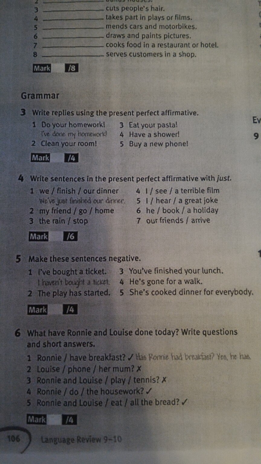 2. a doctor, a building constructor, a hairdresser, an actor, a mechanic, an artist, a cook, a shop assistant.