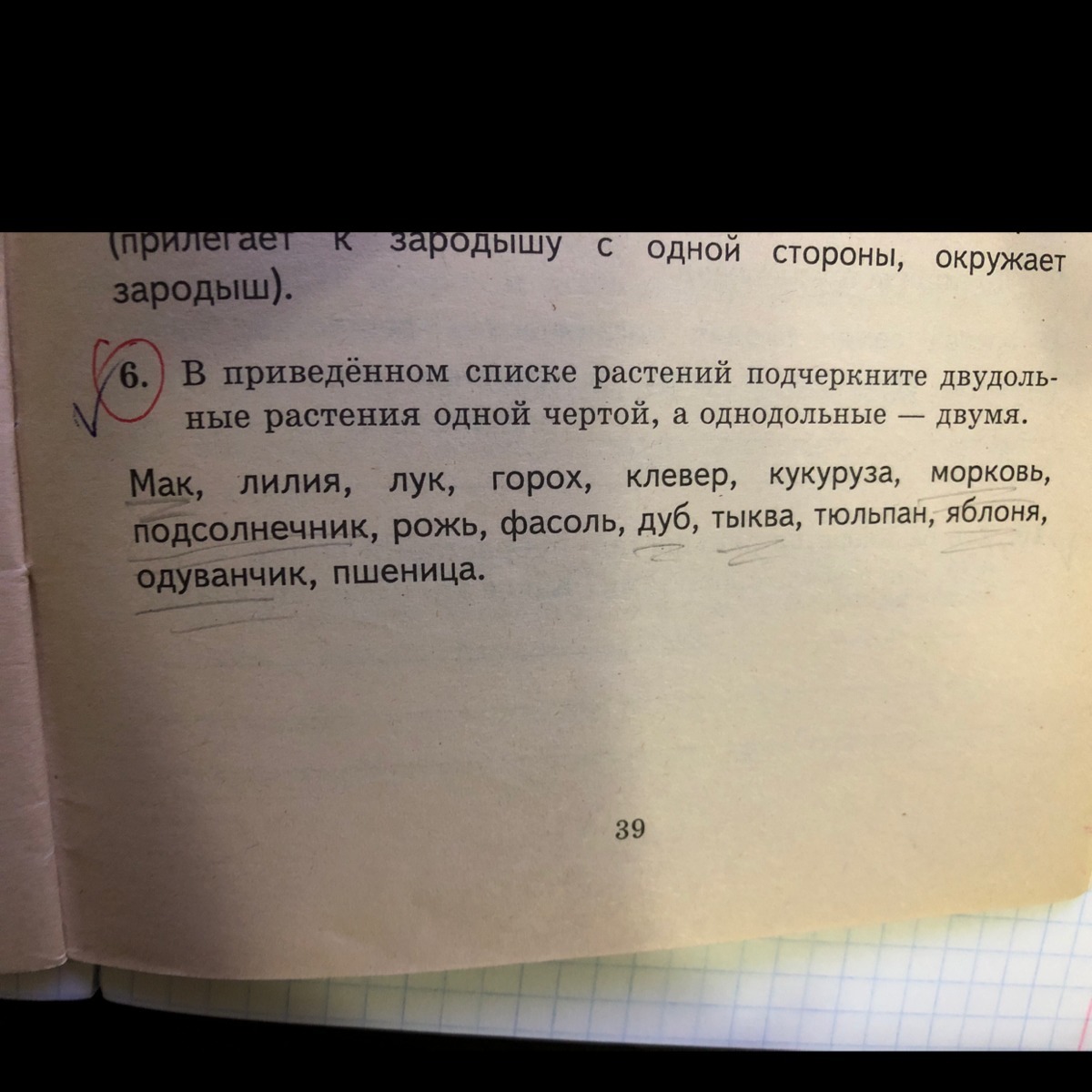 В приведенном списке растений подчеркните двудольные одной чертой а однодольные двумя