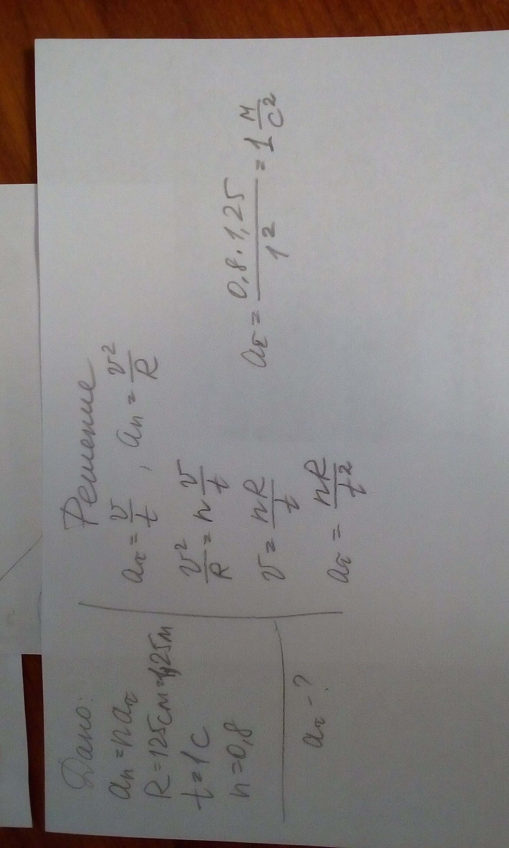 Точка движется по окружности радиусом R с постоянным тангенциальным ускорением at .Через время t после начала движения нормальное ускорение точки an=nat .Найти неизвестную величину согласно номеру задания у таблице.