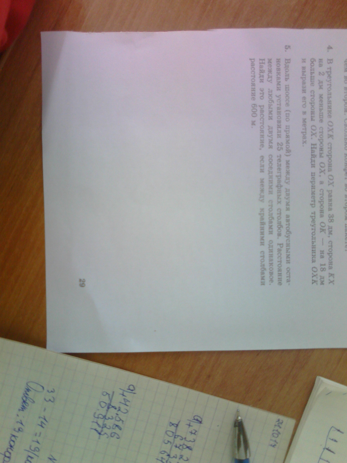 Между 25 столбами 24 промежутка. Т.к. расстояние между крайними 600, то, чтобы вычислить расстояние между 2 соседними, надо 600/24=25.