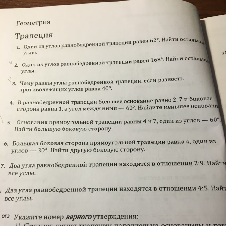 AB1 = 7-4= 3 см, в ∆AABB1 угол A = 60° (по условию) то угол В = 30°, следовательно,AB1 одна вторая AB ( с-во прямоугольного треугольника) т.е. АВ = 2•3 = 6 см.