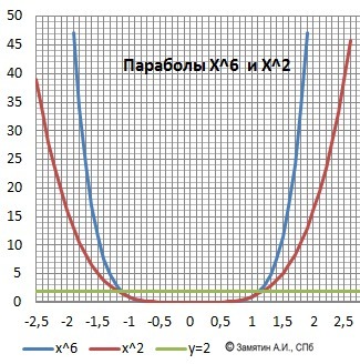 График функции Y = x⁶ - такой же по форме, как и парабола Y = x²/