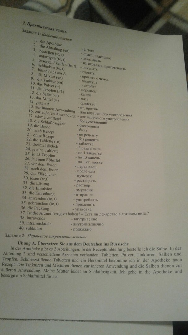 1. Ich gehe in die Apotheke, denn ich muss für meinen kranken Bruder einige Arzneien besorgen.