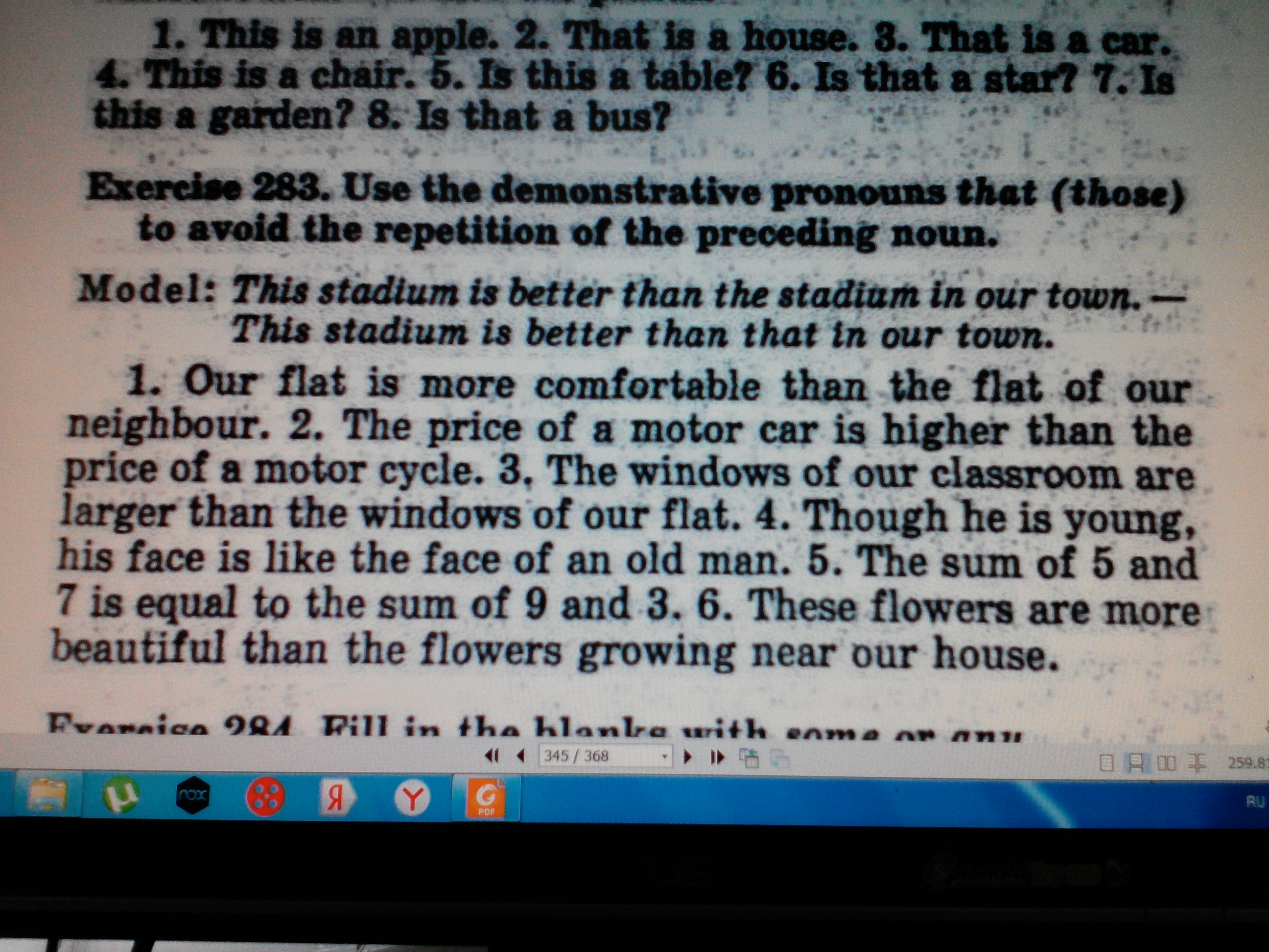 1.Our flat is more comfortable than that of our neighbour.2.The price of the a motor car is higher than that of a cycle. 3.Thr window of out classroomare larger than that of our flat. 4.Though he is young .