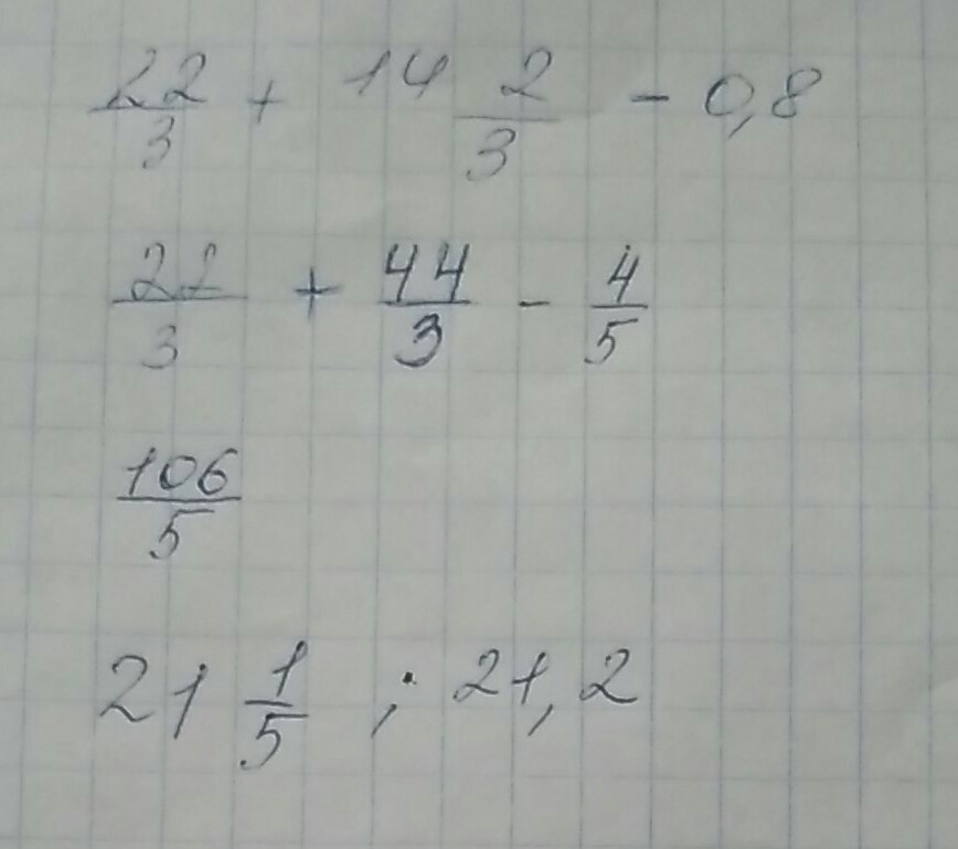 Ответ можешь записать, такой 106/5, либо 21 1/5, или 21,2