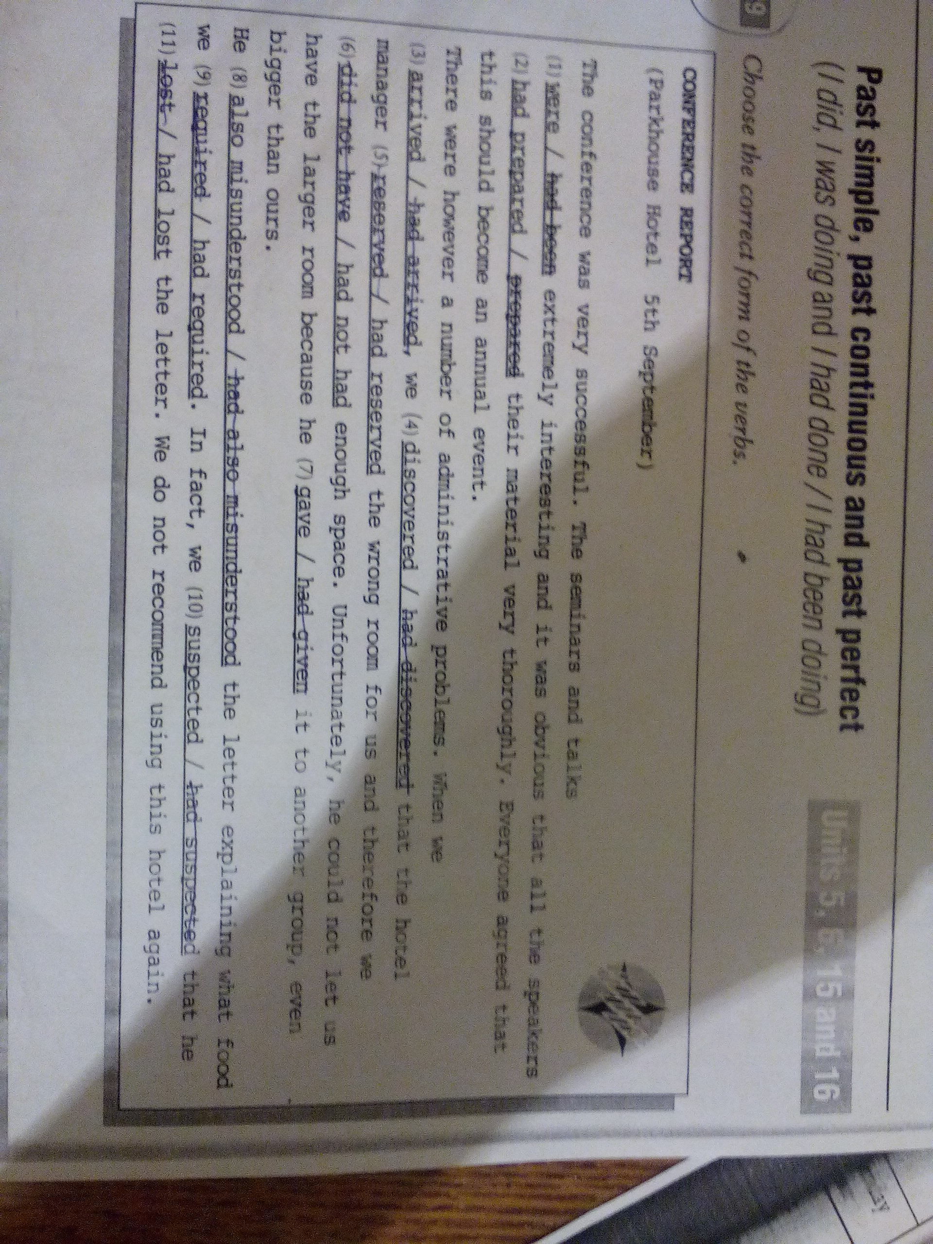 6 didn’t have 7 had given 8 had misunderstood 9 required