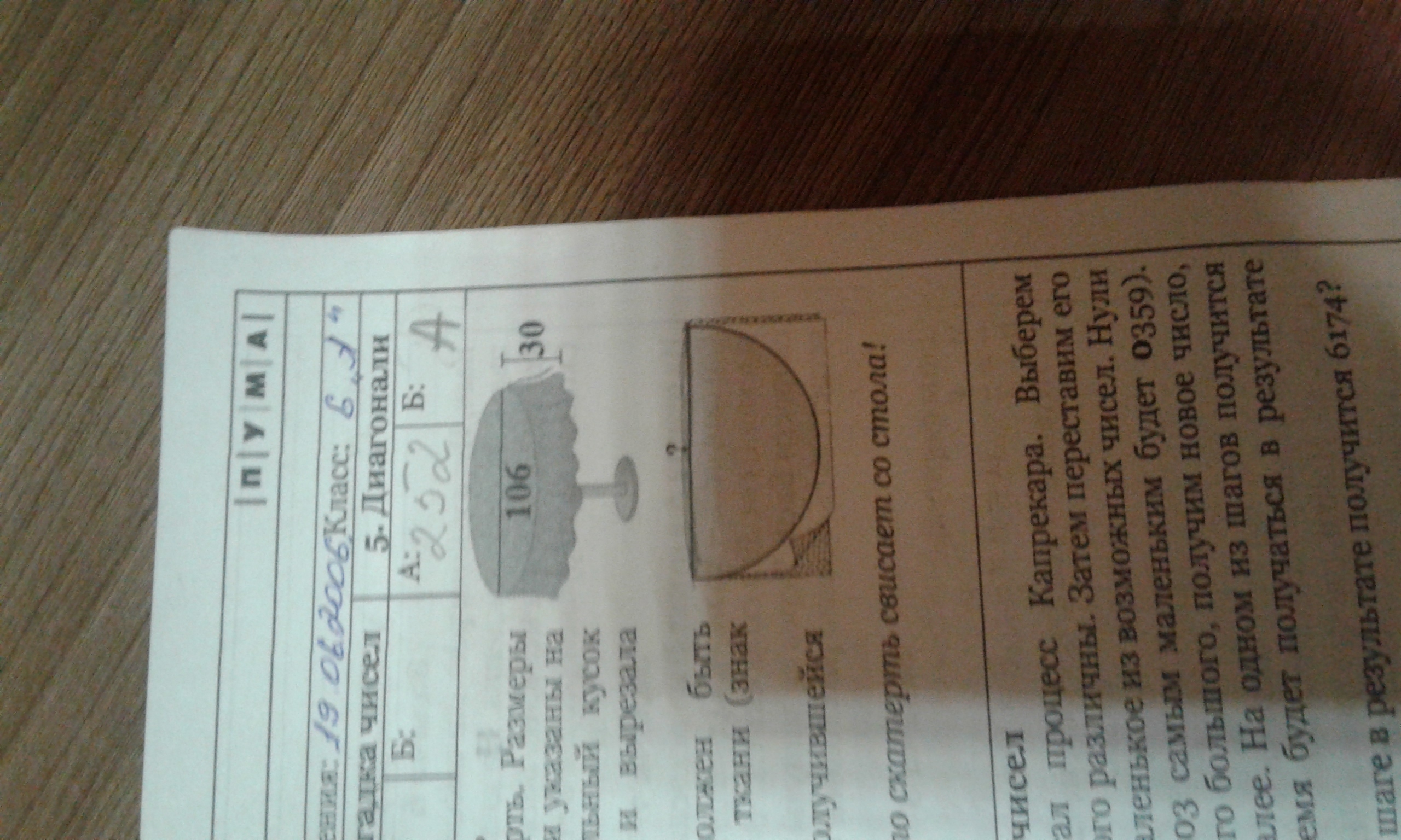 вика хочет сшить круглую скатерть. Размеры стола и желаемой длины скатерти указаны на рисунке. Вика взяла прямоугольный кусок ткани, сложила его пополам и вырезала полукруг вопрос а Какой длины должен быть исходным прямоугольный кусок ткани ( знак вопроса на рисунке) Чему равен радиус получившийся скатерти?