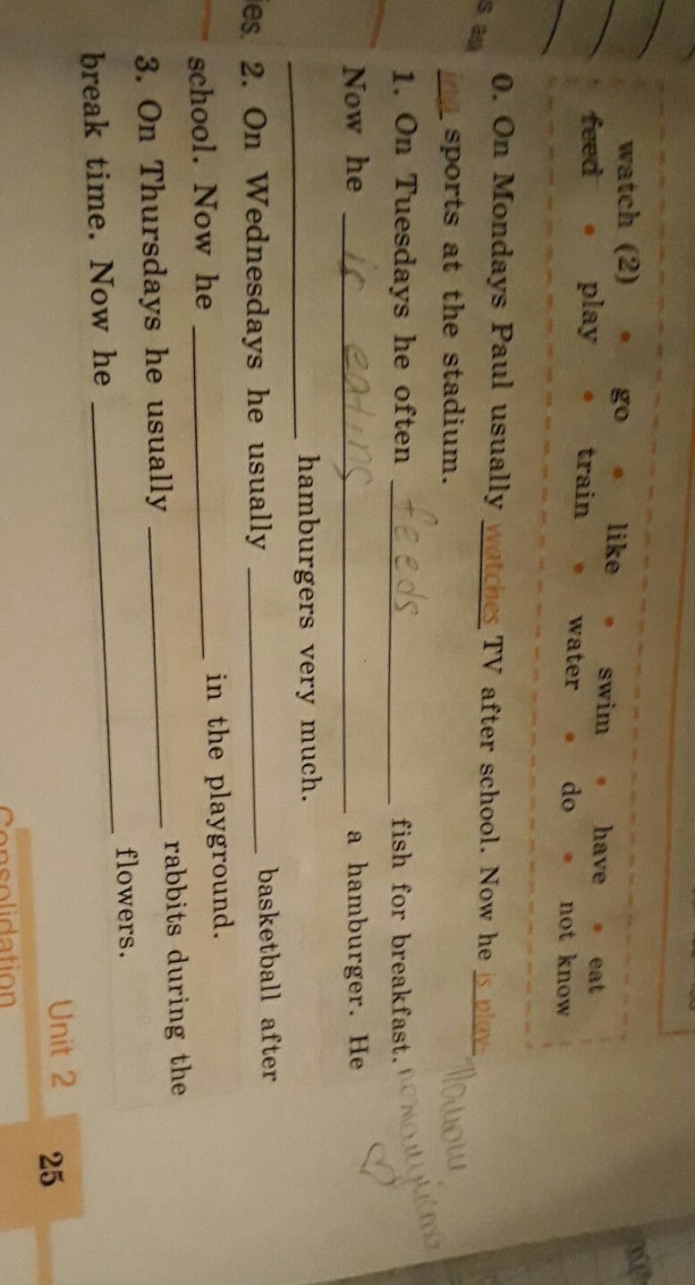 Заполните пропуски словами из коробочки, в правильной форме глагола: Present Simple, Present Progressive