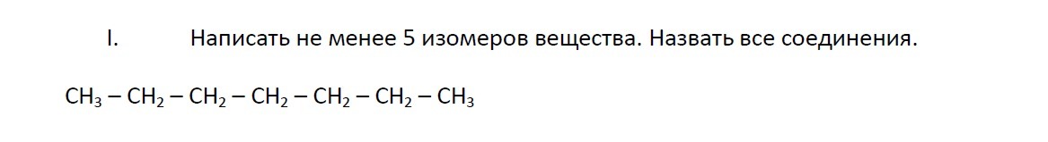 I. Написать не менее 5 изомеров вещества. Назвать все соединения.