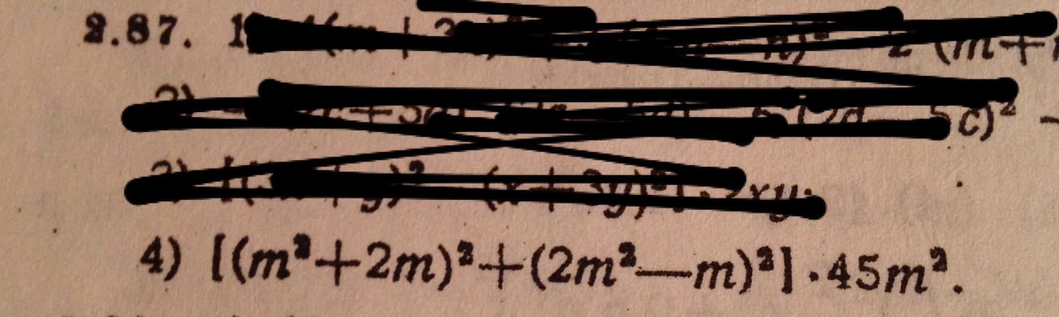 [(m² + 2m)² + (2m² - m)²] * 45m² = (m⁴ + 4m³ + 4m² + 4m⁴ - 4m³ + m²) * 45m =