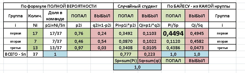 Вопрос 2 - из какой группы. Это по формуле Байеса.