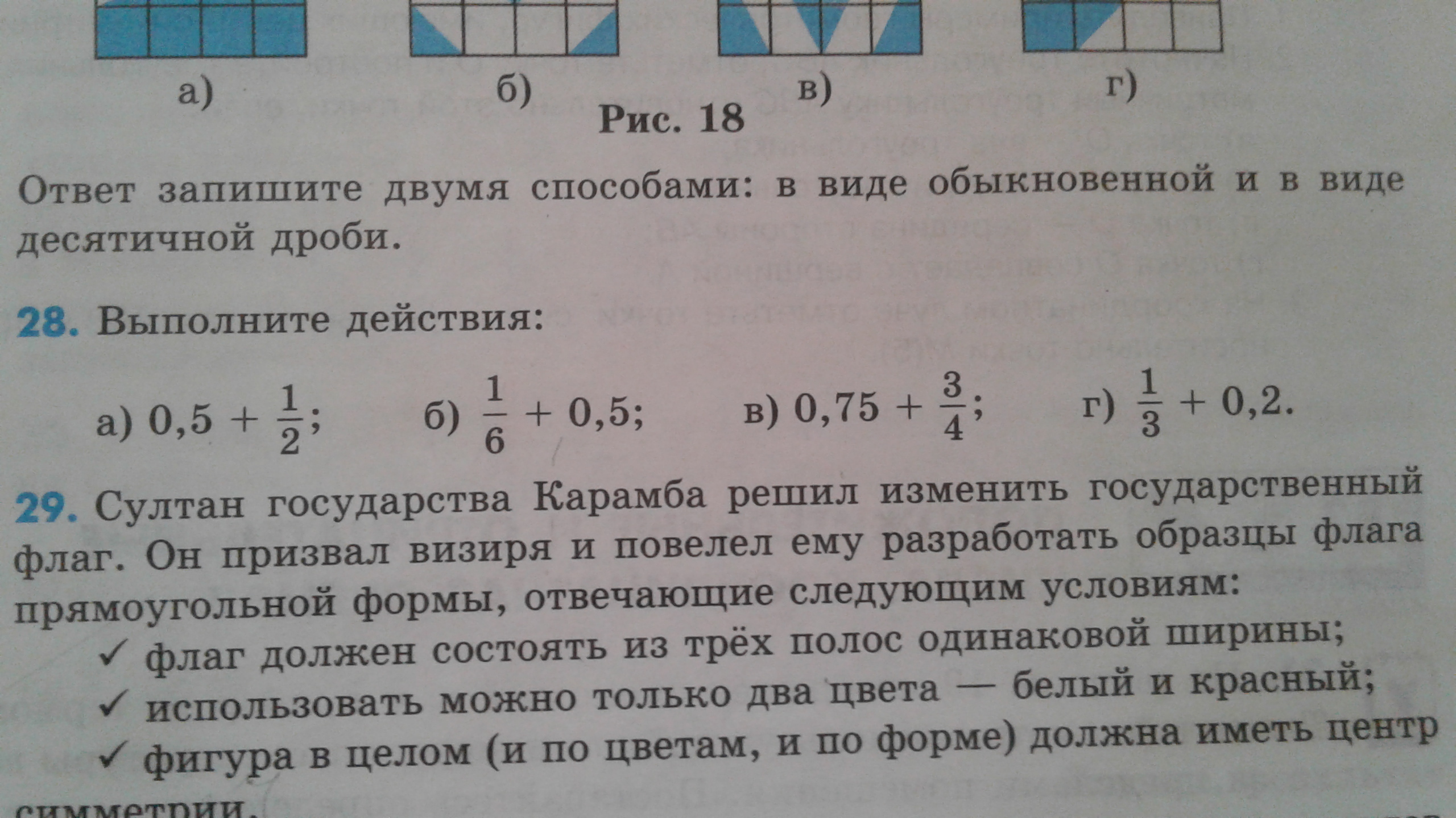1,2 + 1/2 = 1 или 0,5 + 0,5 = 1, можно решить с помощью обыкновеннх дробей или с помощью десятичных.