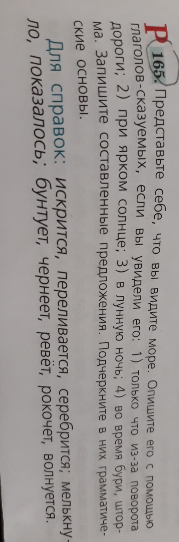 1.)И тут, из за поворота я увидел море. Оно просто искрилось на моих глазах. Ветер так и разгонял волны которые переливались то туда, то сюда. Оно так красиво переливается...Просто блестит.