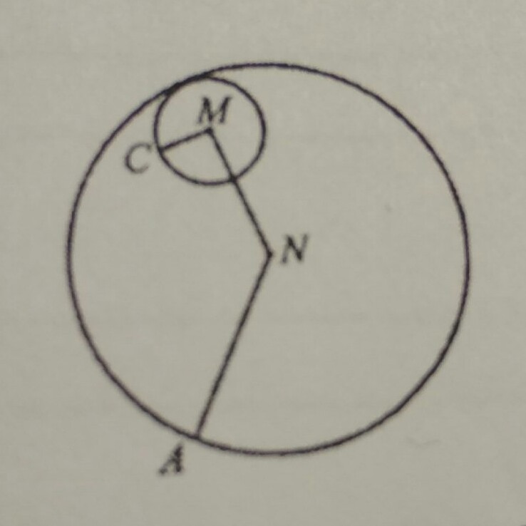 Две окружности с центрами в точках N и M соответственно касаются внутренним образом (рисунок),NM=3см,NA=5см. Найдите длину MC (в см)