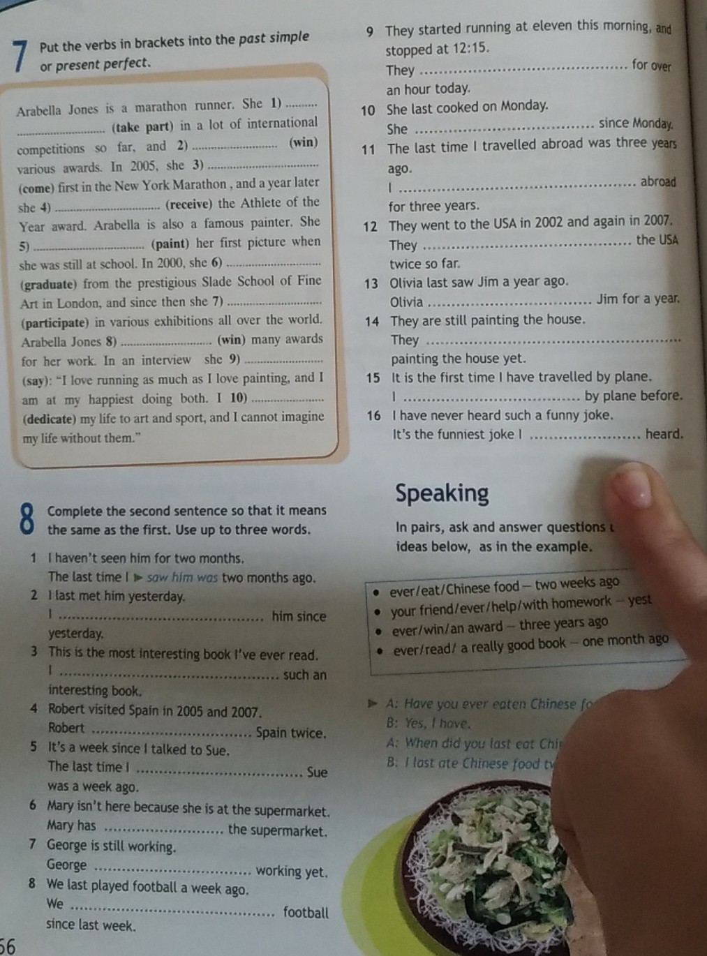 7) 1 - She took part 2 - Won 3 - came 4 - received 5 - painted