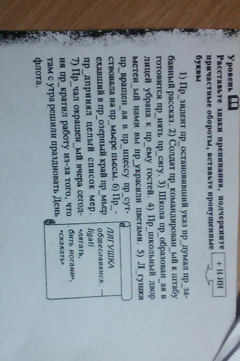 Президент,приостановивший указ,придумал презабавный рассказ.Солдат,прикомандированный к штабу,готовиться принять присягу. Школа,преобразованная в лицей,убрана к приему гостей. Пришкольный двор,метенный нами,вы приукрасили цветами.Лягушка,превращенная в принцессу,присутствовала а премьере пьесы. Приехавший, в приозерный край премьер,предпринял целый список мер. Причал,окрашенный вчера,сегодня прекратил работу из-за того,что там с утра решил праздновать День флота