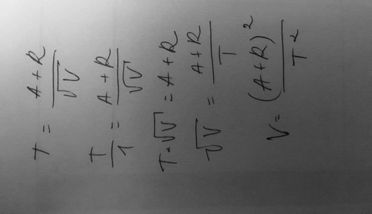 V=(A+R)^2/T^2