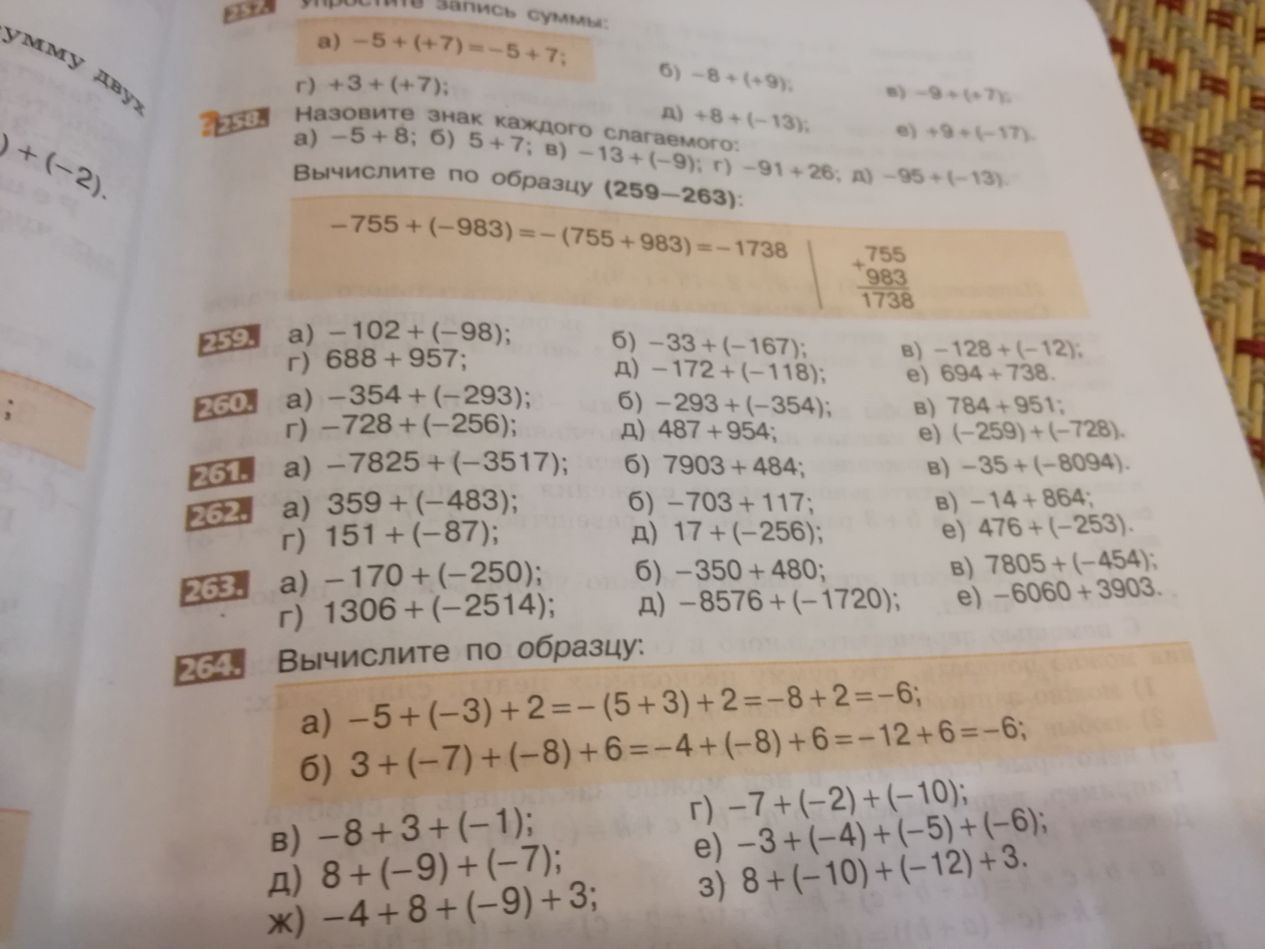 259. а)-200, б)-200, в)-140,г)1645,д)-290,е)1432