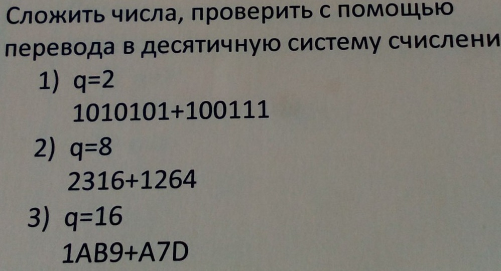 Вообще-то в условии сказано сложить числа, а переводом в десятичную систему уже потом проверить результат.