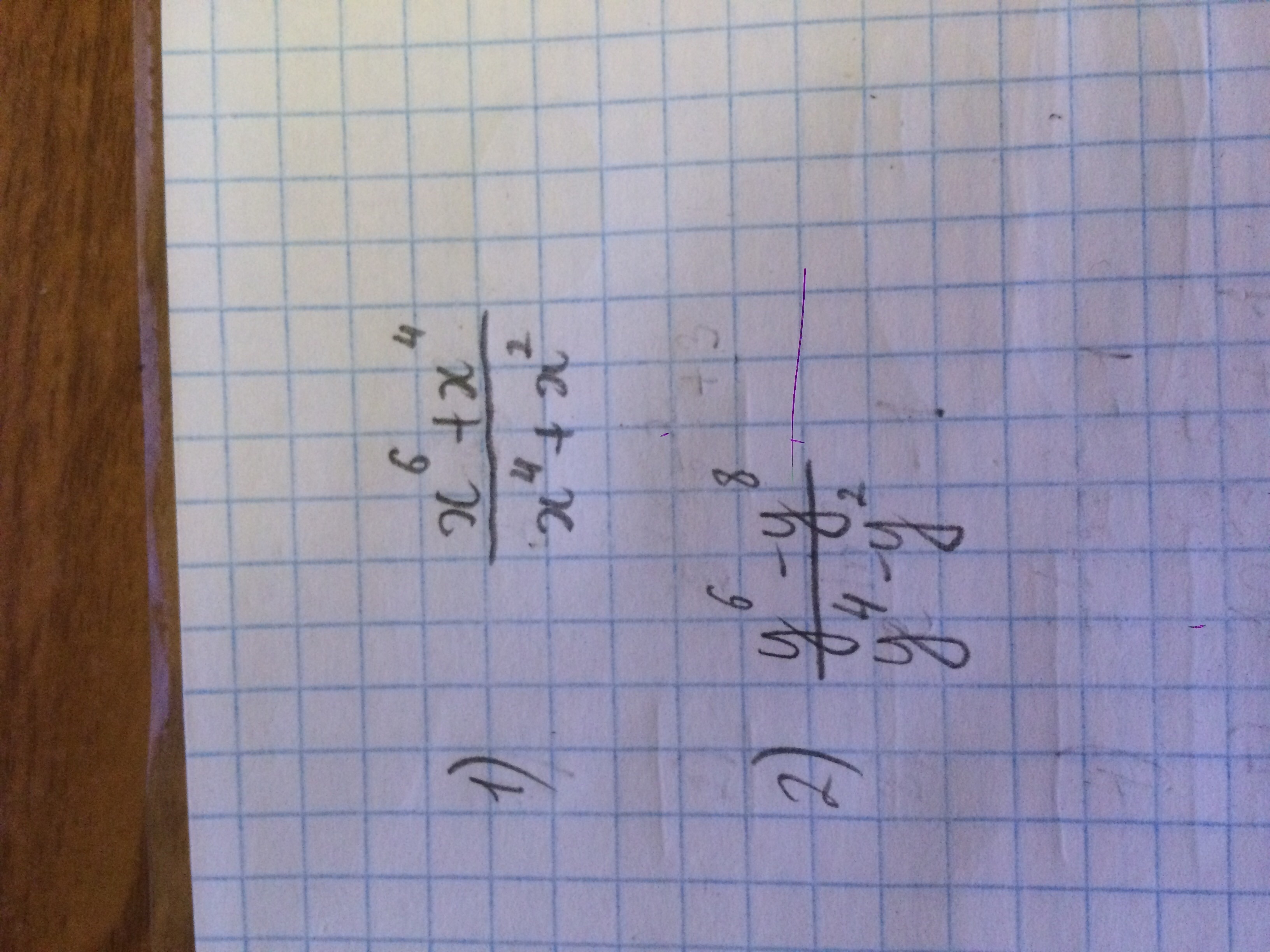 1) (x^6+x^4)/(x^4+x^2= x^2(x^4+x^2)/(x^4+x^2)=х^2