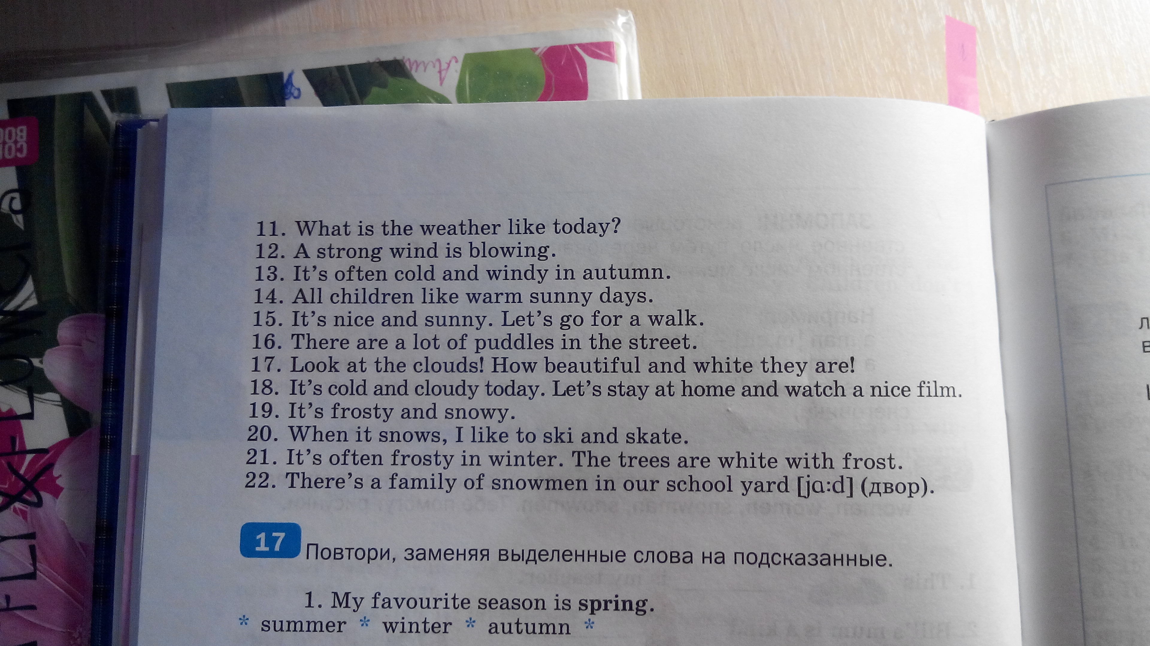 18. Сегодня холодно и облачно. Давай останемся дома и посмотрим красивый фильм.