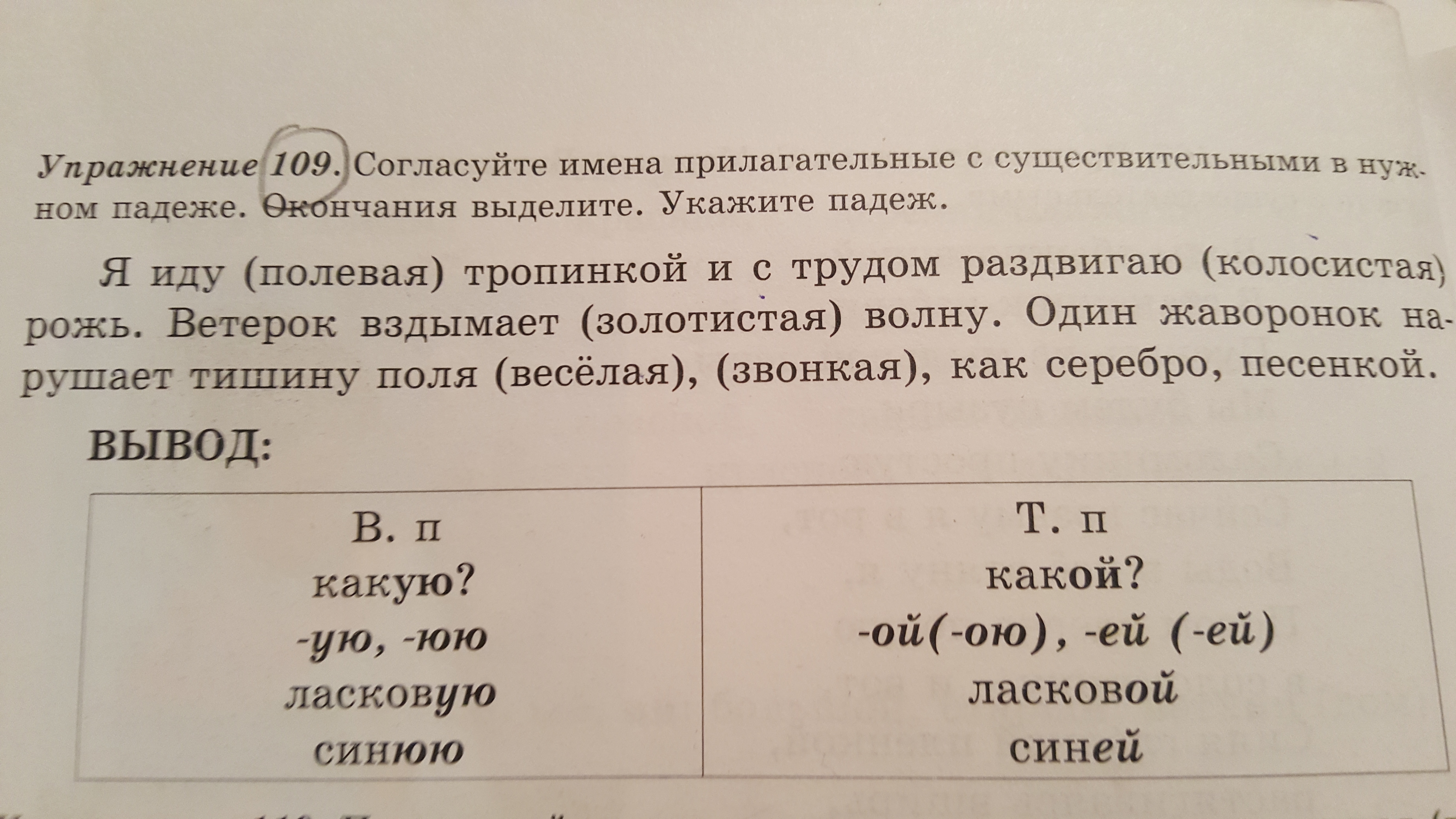 1) полевой(творительный падеж), колосистую(винительный падеж)