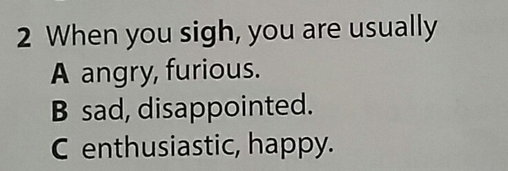 Не знаю, как тебе но для меня более верен ответ B. Потому что, когда я вздыхаю, я всегда в состоянии грусном, разочарованном.