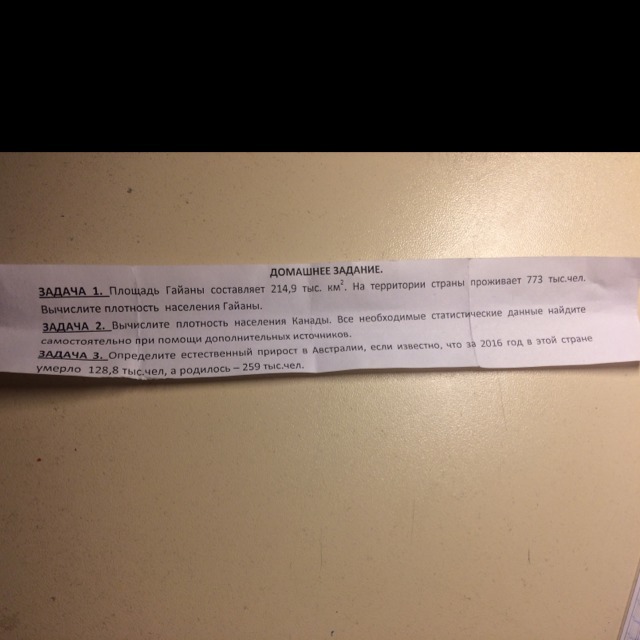 Плотность Гайаны составляет 214.9 тыс.км в квадрате .На территории страны проживает 773 тыс. Чел. Вычислите плотность населения Гайаны.
