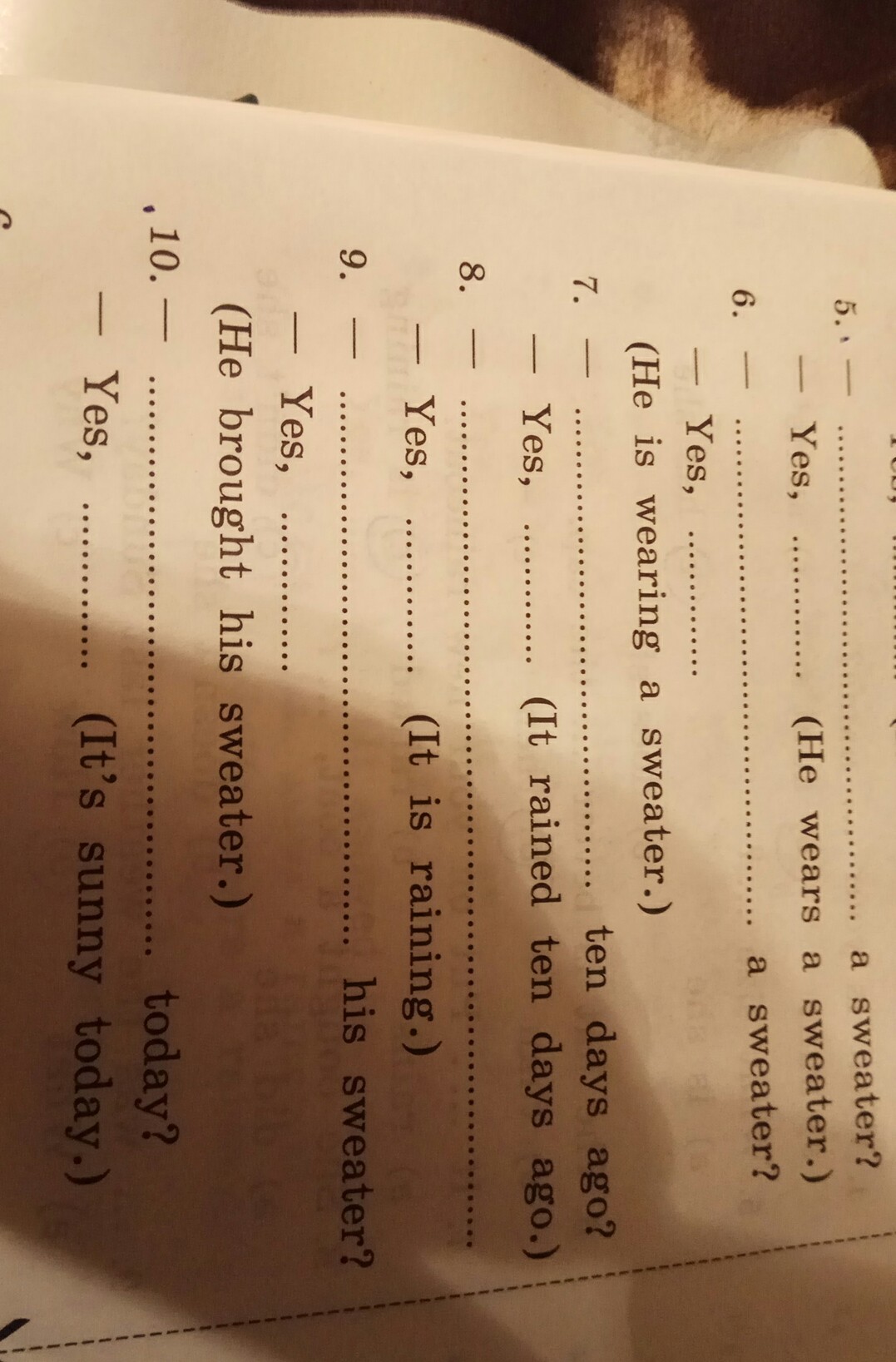 9 Did he bring his sweater? Yes, he did.
