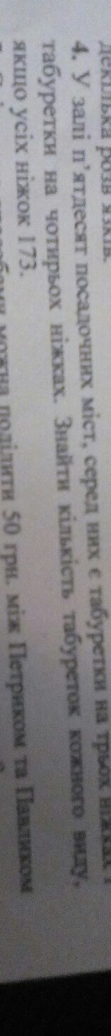 Ответ: 27 табуреток на трех ножках и 23 табуретки на четырех