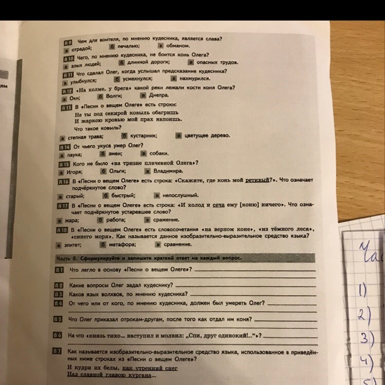 В1. 1. В основу "Песни о Вещем Олеге" на легенде, сохранившейся в одной из летописей.