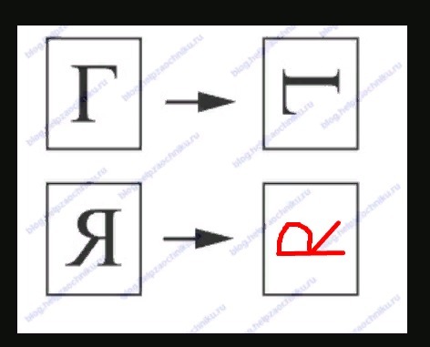 Рисунок в приложении,Я преображается в R и поворачивается налево на ∠90°.